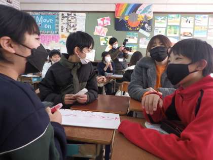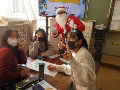 今日の外国語はスペシャルゲストが来てくれ,みんなでChristmas Quiz Showを楽しみました。クイズの中では,クリスマスソングを当てたり,クリスマスクイズをグループ対抗で考え,楽しみました。クイズは大盛り上がり!チームで相談し合って協力し、少し早いサンタクロースとの時間を楽しみました!サンタさん遠くからありがとう!