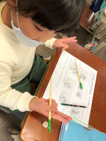 2年生の子どもたちは,おはしの持ち方を学びました。
