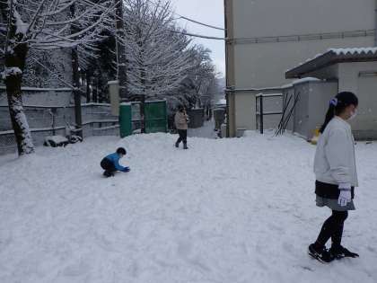 たくさん雪が積もったので,雪遊びを楽しみました。
