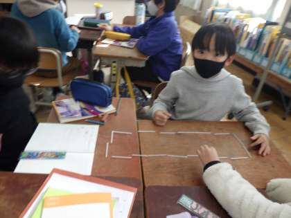 算数科では新しい単元に入りました。ストロー18本を使って長方形を作る活動から,これから学習していくことをみんなで考えました。より分かりやすく分かったことをまとめていくためにはどうすればいいかをみんなで学習していきます。
