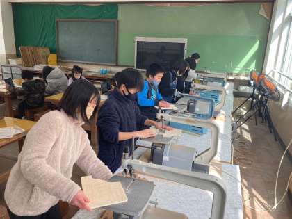 電動糸のこぎりに初挑戦!板を自分の好きな形に切り,オリジナルのパズルを作っています。はじめは「怖いなぁ。板が飛んで来たらどうしよう。」と不安な様子でしたが,「いいね,まっすぐ切れた!」「両手でおさえたら大丈夫や。」と少しづつ自信をもってスイスイ切ることができ始めました。完成が楽しみです。