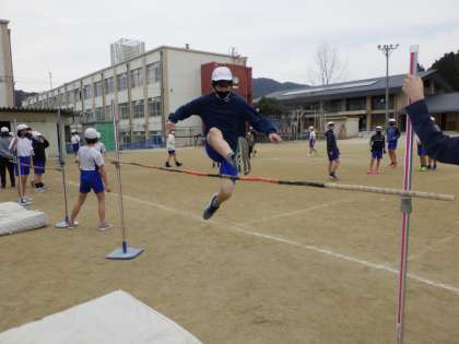 6年生最後の体育では,走り高跳びに挑戦です!友だち同士でアドバイスしながら少しでも記録を縮められるようがんばる姿がありました。中には,はじめの記録から20cmも縮めた子もいました。やればできる!