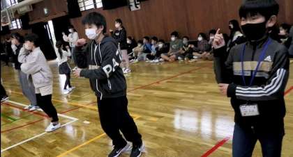 たくさんのメッセージをもらった6年生からは「未来のイワキタへ」の言葉を送りました。それからほんの少しの優しさが世界を変えるという願いのこもった「ツバメダンス」を披露しました!たくさん踊ってね!