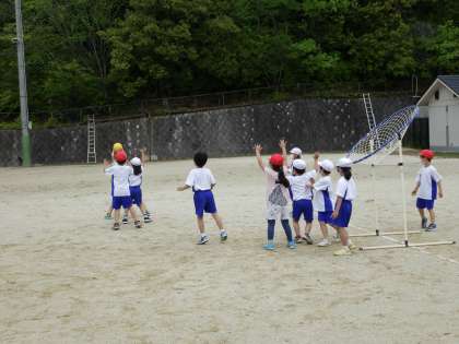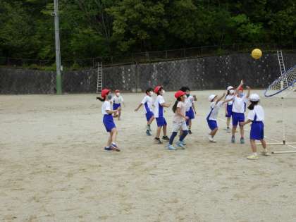 2年生の最初の体育の学習は「パスゲーム」です。互いに声を掛け合いながらパスをつなげ,ゴールを目指します。試合の終了間際に得点が入って勝負が決まるなど,白熱した展開がたくさん見られました。