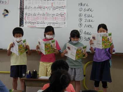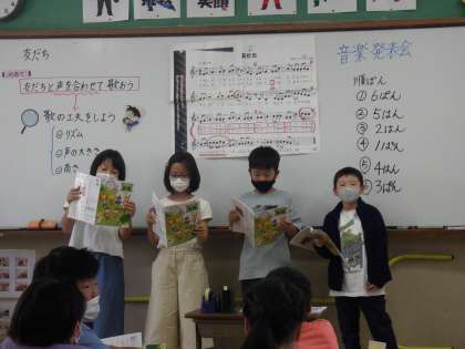 友だちと声を合わせたり,声の高さや大きさなど工夫を考えて発表しました。