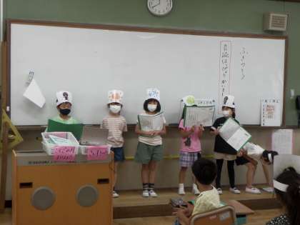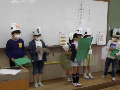 国語の学習で,「ふきのとう音読発表会」をしました。役になりきり,工夫をしながら音読ができていました。友達のいいところも見つけながら発表を見ている子もいて,あたたかい雰囲気で学習を進めることができました。