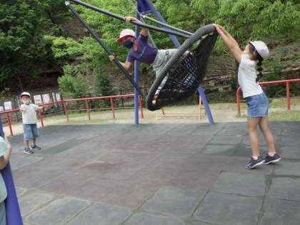 1年生と一緒に「子どもの楽園」に行ってきました。学校たんけんに引き続き,1年生を楽しませてあげようと,事前の準備から「何をして遊ぼうか」「1年生はどんな遊びをしたいのかな」と一生懸命考える姿が見られました。たくさん計画を立てたおかげで,1年生も2年生も楽しみながらよい時間を過ごすことができました。1年生に「先のっていいよ」「何して遊びたい?」と声をかけて一緒に遊ぶ姿は,立派なおねえさん,おにいさんでした。