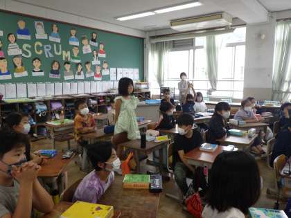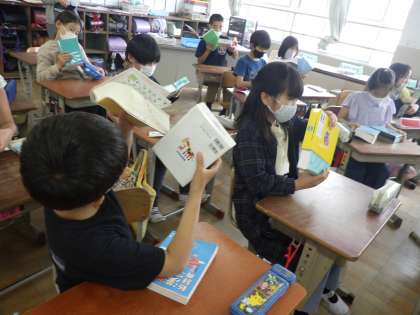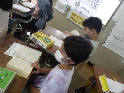 学ぶのかや使い方を図書の先生に教わりました。片付け方も習い,たくさんいろんなページをさわることで少し漢字辞典のことが分かったようです。もう1時間漢字辞典の学習があります。