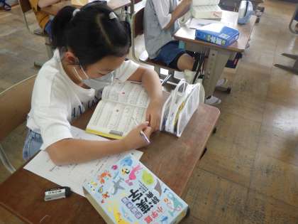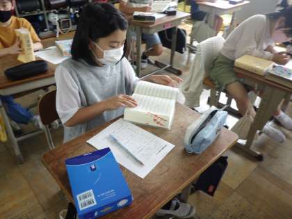 今日は漢字辞典の使い方パート2です。前回どのようにして活用するかの方法を3つ知ったので,実際にいろんな漢字の意味や熟語を探しました。さわっていくと少しずつ慣れ,楽しんで取り組むことができました。この学習に限らず,積極的に使っていってほしいと思います。