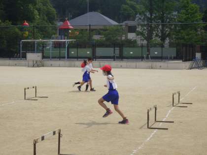 体育科では「ハードル走」をしています。たくさん飛んでみるなかで少しずつ自分の課題が見えてきたようです。今日は,先生からのワンポイントアドバイスがありました。意識して跳んでみることで,跳び方が大きく変わりました。いかに早く跳ぶためにはどうすればいいかを考えていきたいです。