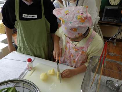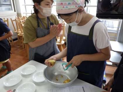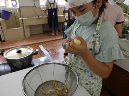 ゆで芋を作りました。じゃがいもの皮むきなども,丁寧にすることができました。