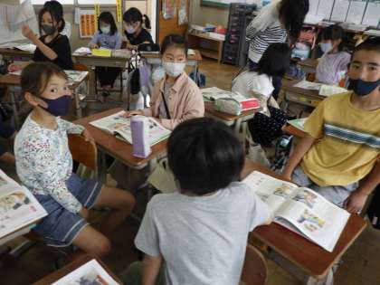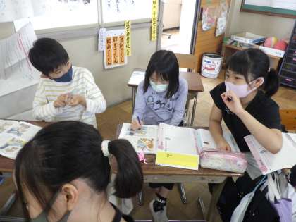 2時間あったので1時間目には,いろんな遊びを通して「人に伝える」楽しさを教えてもらいました。いつもの雰囲気と違った道徳の時間となり,楽しむことができました。