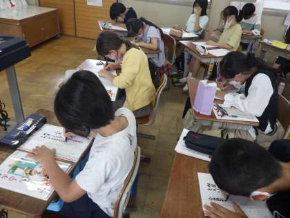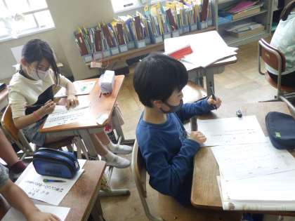 今日の書写の学習では,ペンを使って硬筆の学習をしました。日ごろから字を丁寧に書く習慣を付けたいところですが,改めて字を丁寧に書くという大切な時間となりました。清書では,ペンを使って書くので緊張感があったようです。