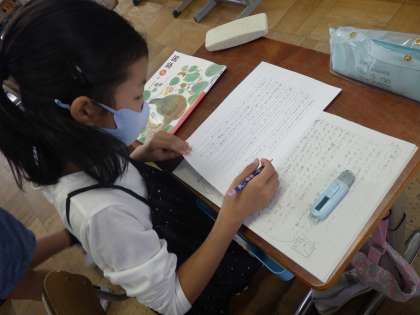 国語科では,「お礼の気持ちをつたよう」という単元に入っています。なかなか手紙を書く機会も少ないかもしれませんがが,どんなときにも相手に気持ちが伝わるような手紙が書けるようにと練習しています。少しずつ内容も決まり,形になってきました。