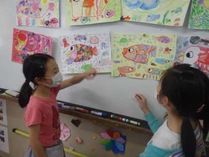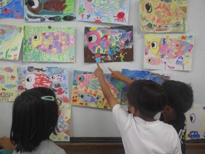 3年生は,にじいろ魚を描きました。