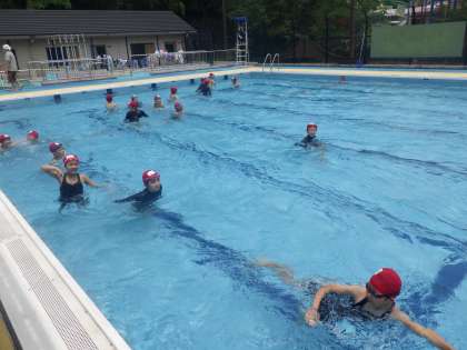 体育科では,プール学習が始まりました。天気も良く,気持ちよく入れたようです。水慣れをしていくなかで,昨年度のことも思い出しながら,自分の目標も考えられたようです。次回からもどんどん泳いでいけたらと思います。