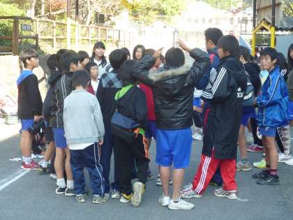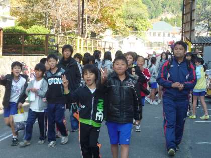 6年生が「支部駅伝交歓会」に向け元気に出発しました。間もなく号砲の予定です。全力を出しきり,最後まであきらめず,頑張り抜いてくれることを願っています。