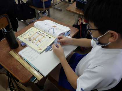 算数の学習では,円の周りの長さを調べ,そこから円周率を求める学習をしました。「3.14」をしっかり覚えて,円の周りの長さを計算で求められるように頑張ります!