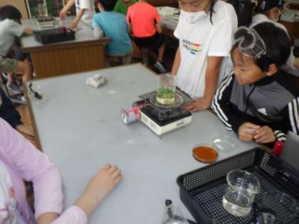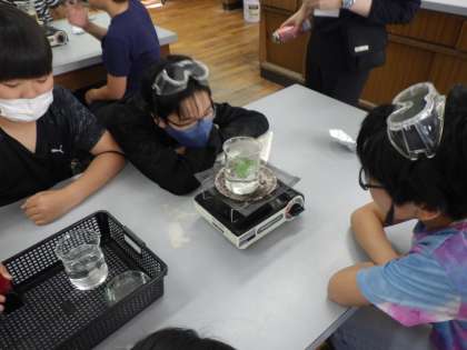 理科の実験では、日光に当てた葉と当てていない葉の違いを調べました。