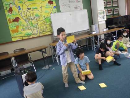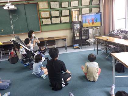 北総合支援学校に通っている1年生のお友達と「初めましての会」をしました。初めはみな緊張していたようですが、自己紹介のあとに一人ずつハイタッチをさせてもらったことでみんなに笑顔が戻りました。一緒にエビカニクスを見たり、プレゼントを渡したり、短い時間でしたが、楽しい時間を過ごすことができたのではないかなと思います。