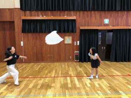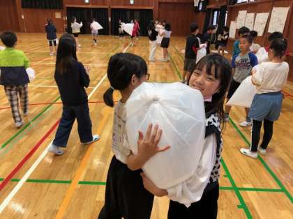 最初は体育館で大きな袋に空気を閉じ込めて、