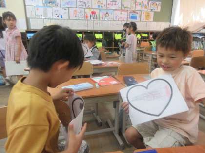 自分のすきなものを理由をつけながら友達に紹介しました。どの子も友達のすきなものに興味津々で紹介を聞いていました。理由の言い方も以前と比べて、とても上手になってきていて成長が感じられました。