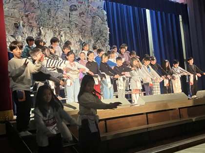 今日は、学習発表会で、総合的な学習の時間と社会科で学んだ岩倉の昔の様子や、歴史を劇にして発表しました。