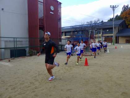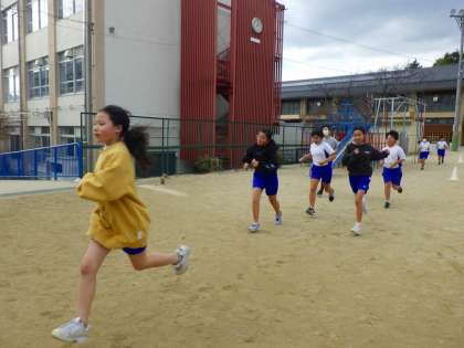 体育科ジョギング1000m走です。みんな自分の記録を更新しようと頑張っています。