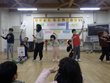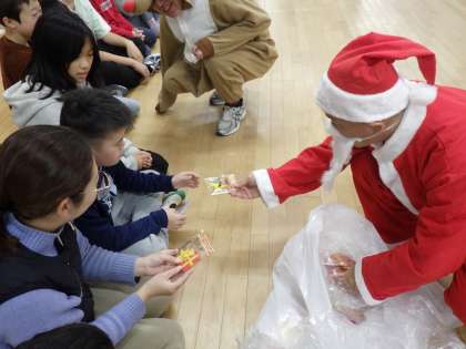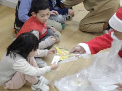 頑張って練習したダンスを見てもらったり、お友達の出し物を見たりして楽しみました。なんとサンタさんとトナカイが表れて、みんなが作ったプレゼントを渡してくれて、大喜びでした!