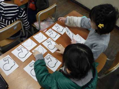 今日は今すきなことと頑張っていることをカードに書き、友達と交流しました。