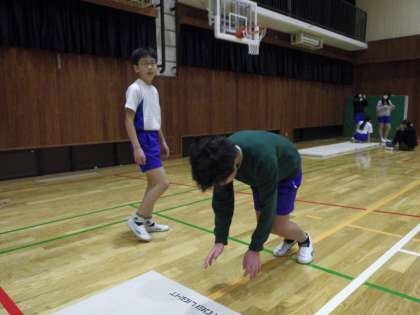 前転の発展技、とび前転です。試技がジャンプから始まります。はじめにジャンプするのが難しく、とんでいると思っても・・・なことが多いです。動画撮影をしたり友達に見てもらったりしながら練習しています。