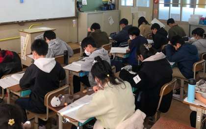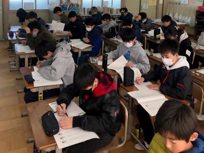 冬休み明けのジョイントプログラム確認テストを実施しました。最後の1秒まであきらめずに取り組みました。結果は学年末に返ってくる予定です。