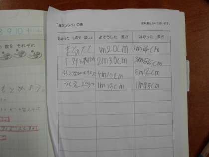 メートルとセンチメートルの単位に気を付けながら測ることができました。