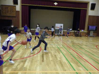 体育科「バスケットボール」は3時間目でした。だんだんとルールにも慣れてきました!