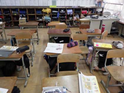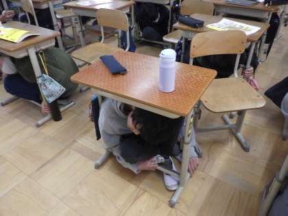 今日は避難訓練がありました。地震からの火事の想定でした。第一報が入ったらまず、机の下に頭を隠しました。その後体育館へ避難し、消防署や消防分団の方からのお話を聞きました。6年生は真剣に取り組むことができ、全校児童にも訓練に取り組む姿勢を示すことができました。
