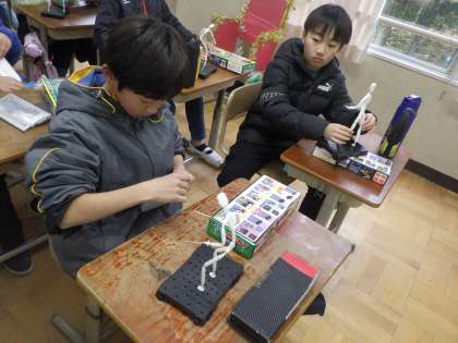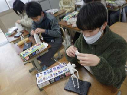 2組でも図工がありました。動きのある作品をつくろう!次回は色塗りに入ると思います。絵具セット、忘れずに!