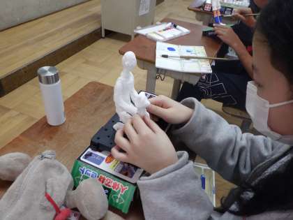 今日は3,4時間目にたてわりウォークラリーの予定だったのですが、あいにくの雨で延期になりました。そこで3時間目は図工になりました。未来の私、少しずつ進めています。今日はしっかり肉付けしました。また細かな部分もこだわって作っています。