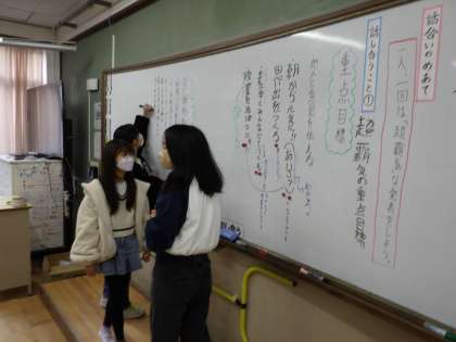 6年2組の2月の超目標は「超覇気」になりました。今日は重点目標と具体的取組を話し合いました。司会グループが進行し、みんなで残り2ヶ月でどんなクラスを作りたいかを考えられました。