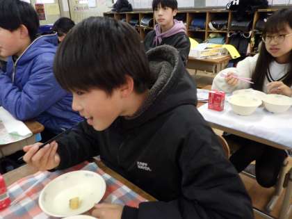 今日の給食は豆乳鍋と鱈の竜田揚げでした。揚げ物は嬉しい。冬に温かいメニューは嬉しい。