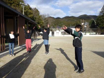 今週末が京キッズランです。練習では動きづくりを中心に行っています。まずは、ストレッチからです。肩甲骨を動かすことを意識しています。
