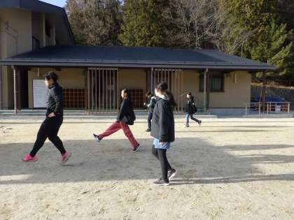 ステッキングステップです。つま先を使ってバネを意識して足を入れ替えます。接地した時に膝がつぶれないようにしましょう。
