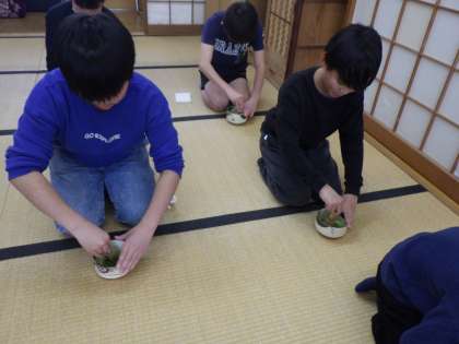 お茶を上手に立てるのは、難しく、みんな一生懸命、茶せんを動かしていました。