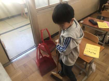 新1年生を教室に迎えるために心をこめて掃除をしています。お兄さん・お姉さんに少しずつ近づいてきています。