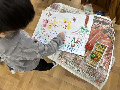 図画工作科の学習で,身の回りにあるものに絵の具をつけて,作品を作っています。教室の中は「こんな模様になるんだ」と新しい発見であふれていました。