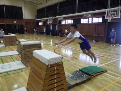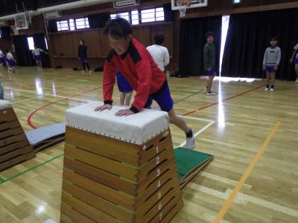 とび箱、みんな跳ぶ跳ぶ!まずはたくさん跳んでみましょう。そこから課題を見出し、どうすればよりよくなるのか考えます。友達と協力したり、お手本の動画を見たり、カメラで撮影したり…。さぁ、君はどの方法で上達する!?