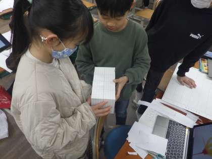 きれいに作れた時にはうれしそうに見せ合っていました。
