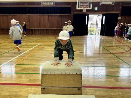 体育の学習で「とびばこあそび」を行いました。前回とは違う跳び方に目を輝かせ,一生懸命練習を重ねていました。青のはなまる「どんなこともやってみよう」の素晴らしい姿です。