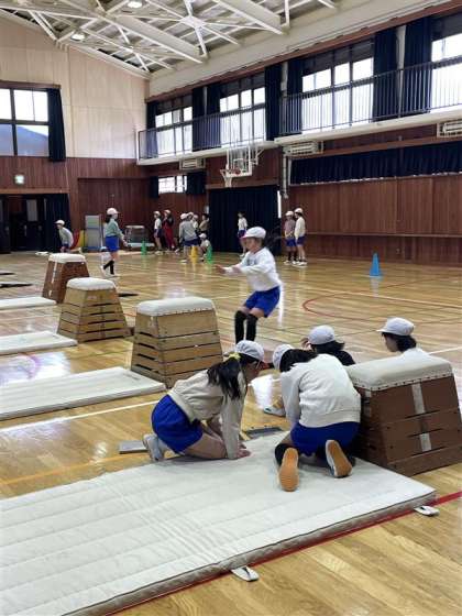 自分が跳んでいる姿を動画で撮影したり、上手にできている友達にアドバイスをもらったりして、自分のめあてにむかってがんばる姿が素敵でした。