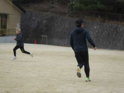 みんな遊びです。写真では何をしているか伝わりにくいですが「けいどろ」をしています。私はこけてしまい、膝に絆創膏を貼ってもらいました。
