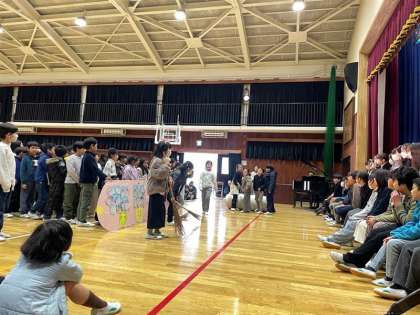 6年生が学習発表会で披露した「成超列車」をもとに「思い出列車」を作り、劇をしました。